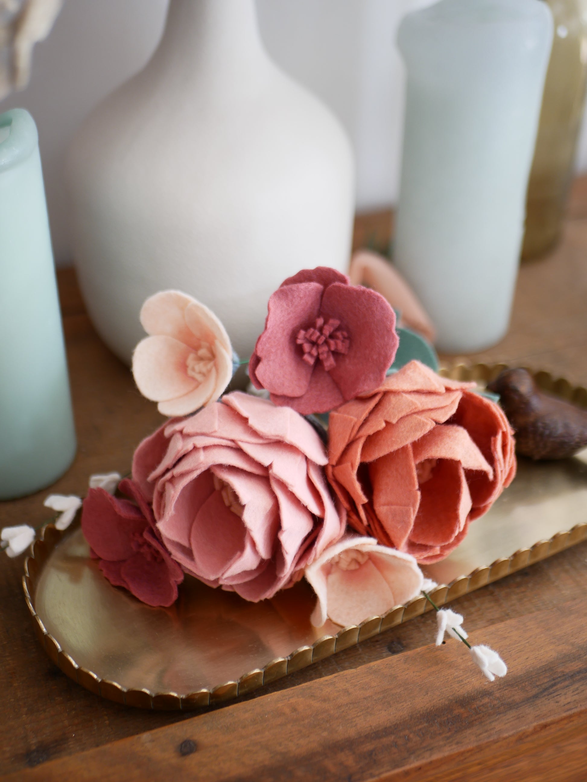 Chaque élément est découpé et assemblé à la main avec soin, donnant forme à une composition florale harmonieuse