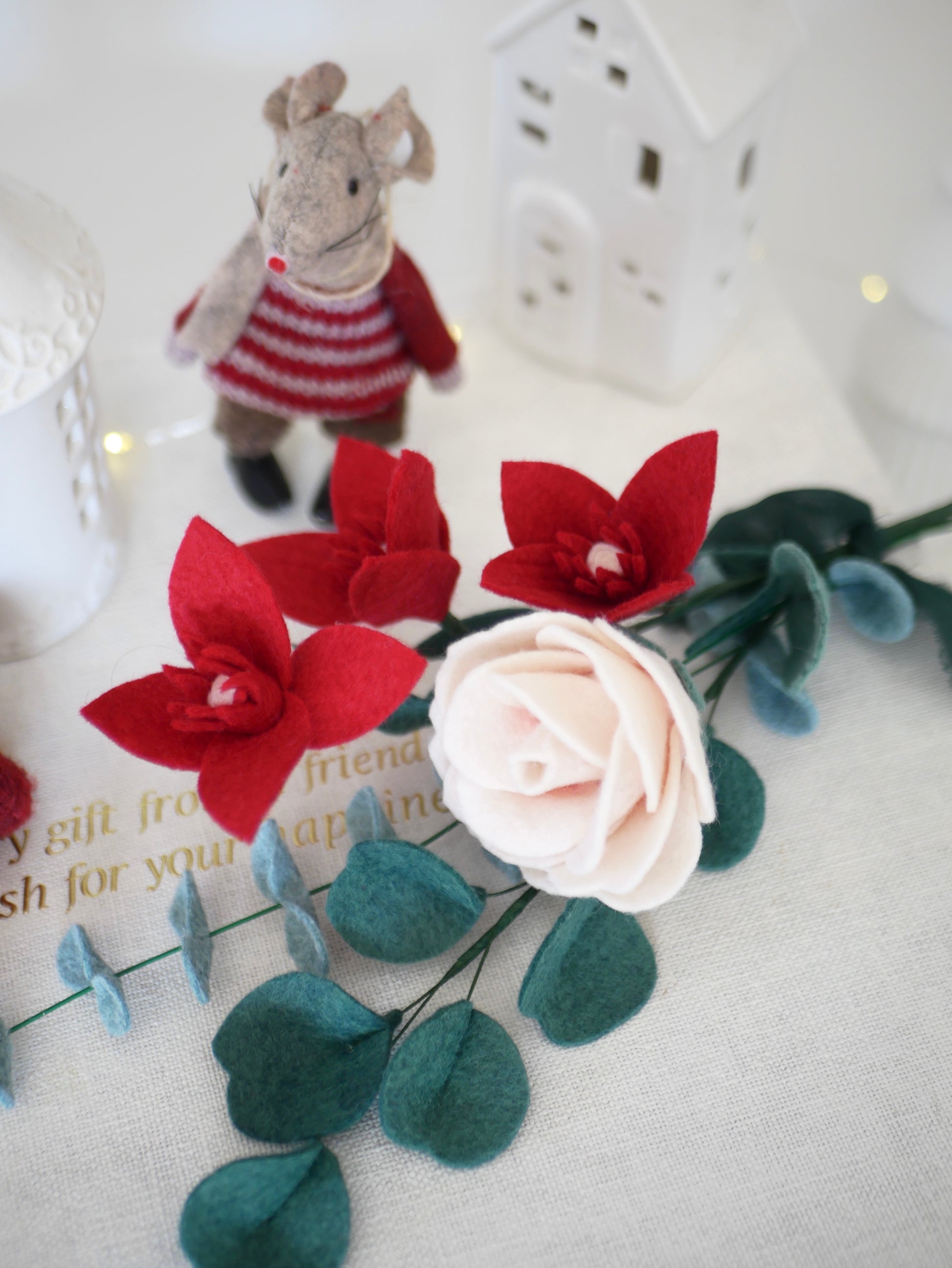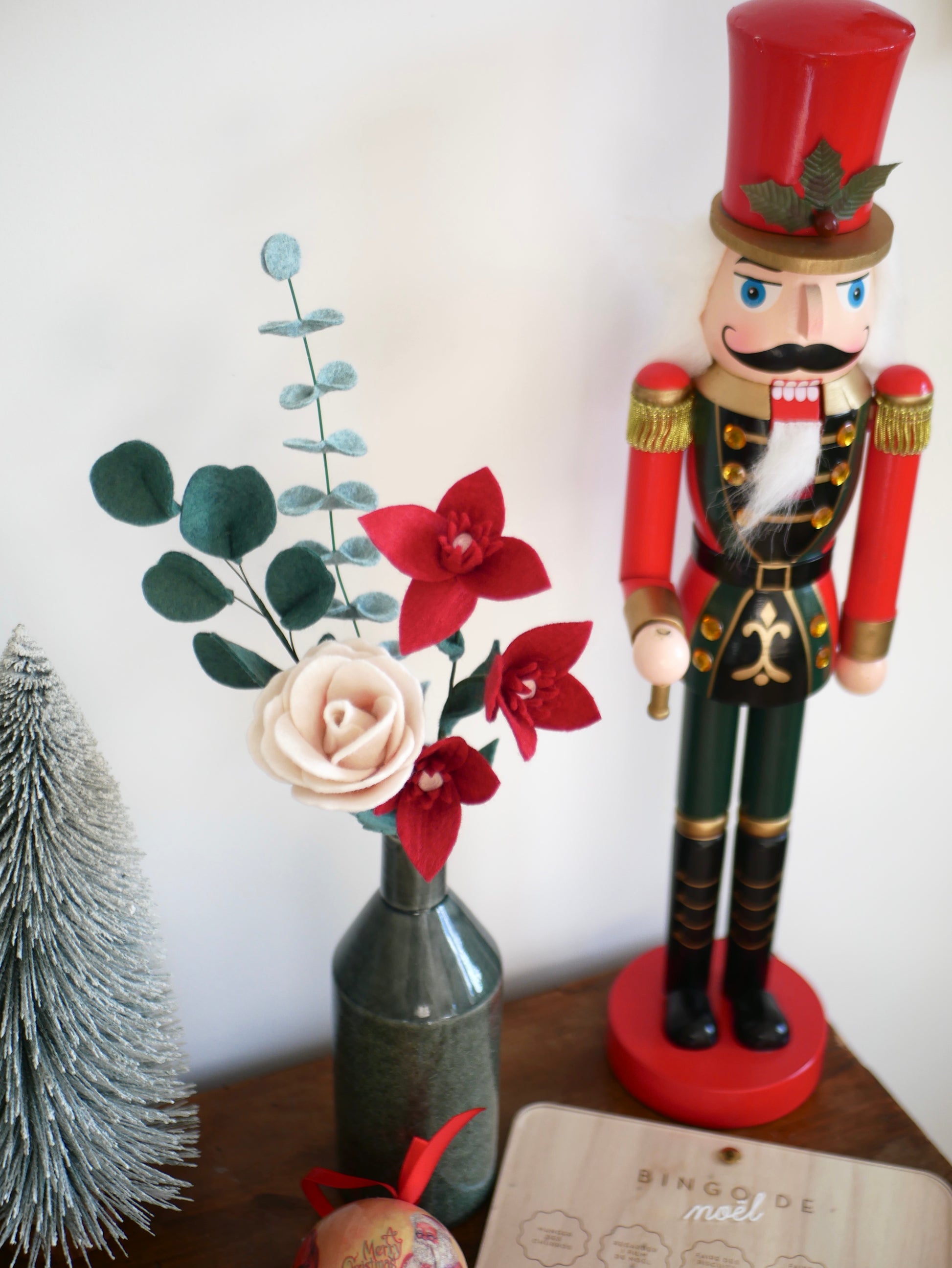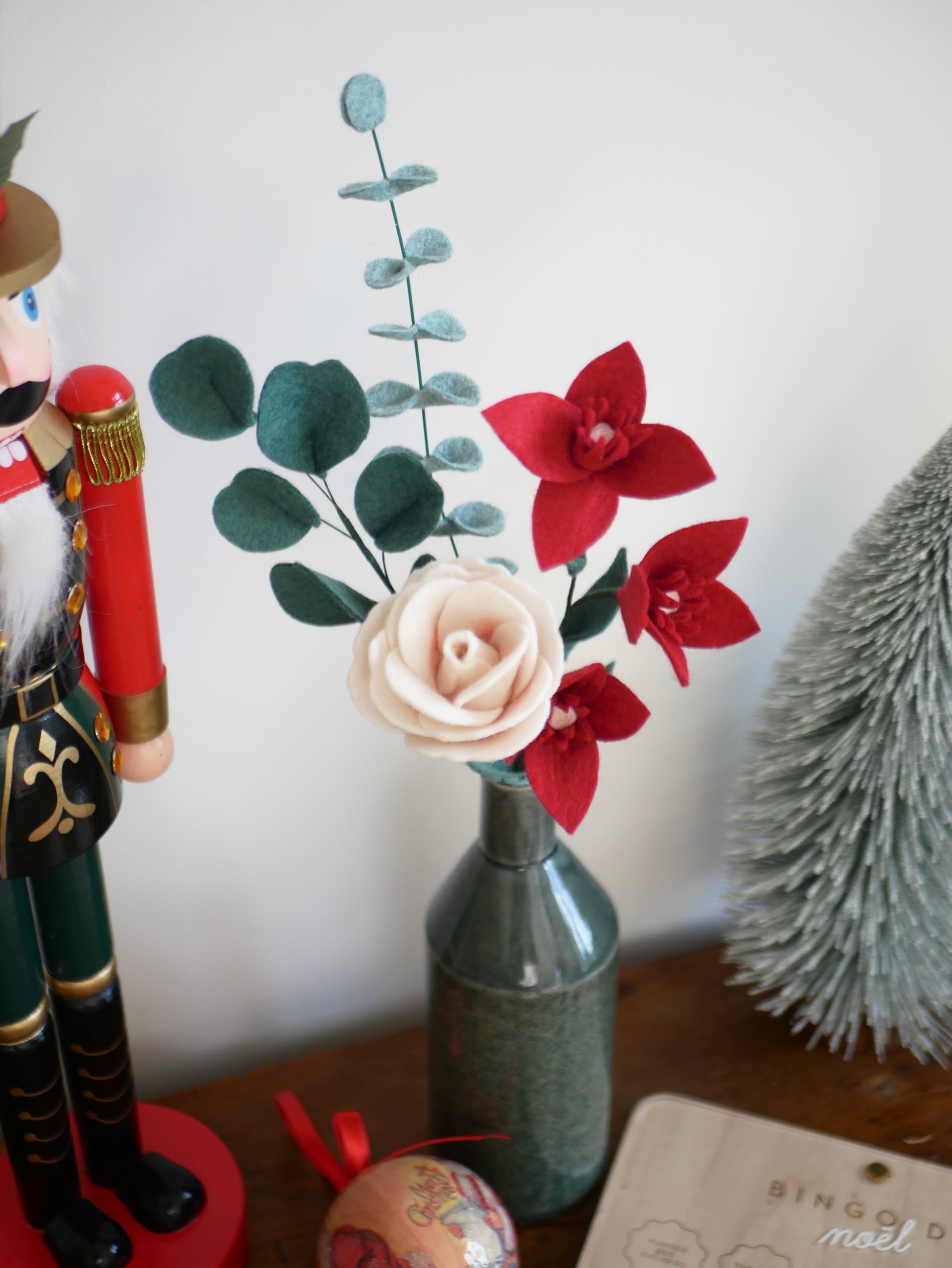 Chaque élément est découpé et assemblé à la main avec soin, donnant forme à une composition florale qui apaise et invite à célébrer Noël